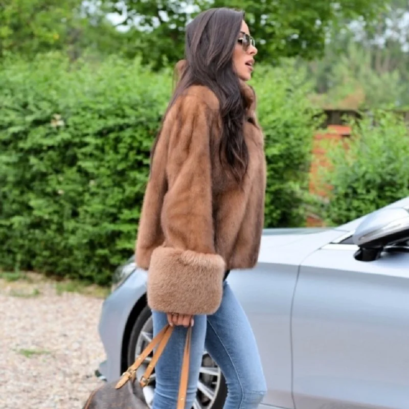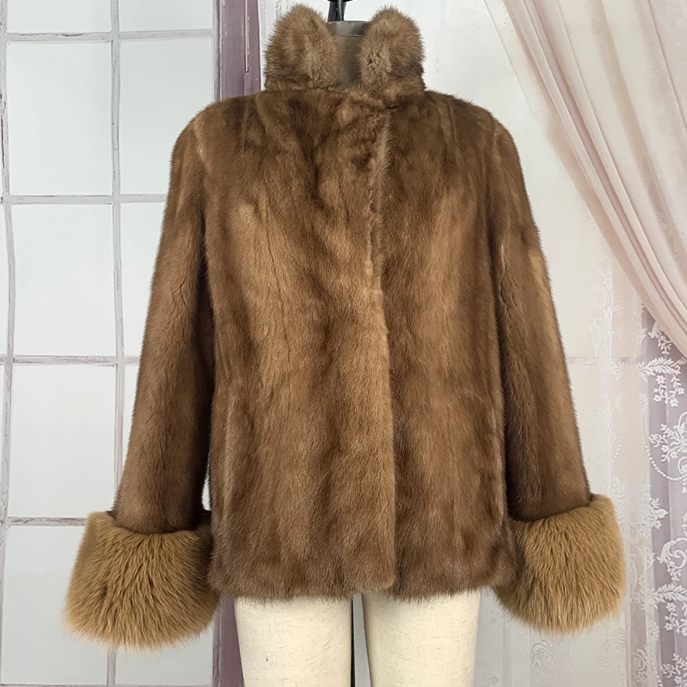 Норковая шуба из натурального меха, зимняя короткая Шуба с манжетам...