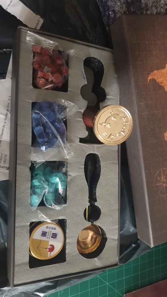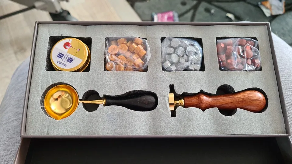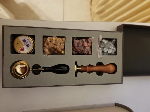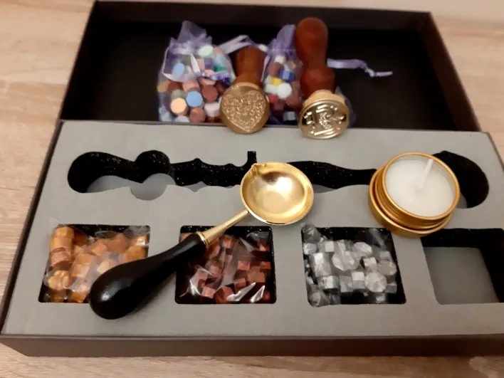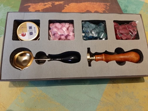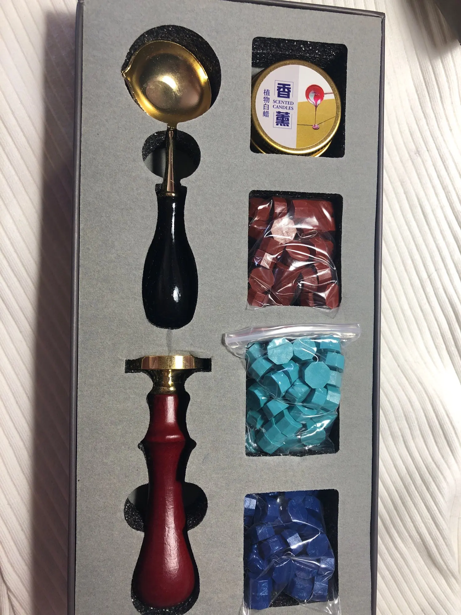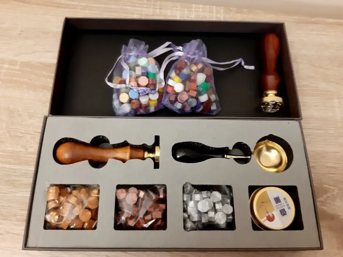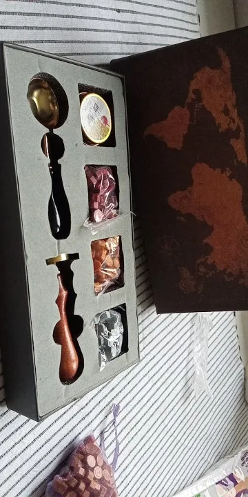 все соответствует, упаковано красиво и качественно. для печати нужно брать до 3х камешков сургуча, печать четкая, красивая, понятная. ложка только коптится быстро, и нагревается сильно, обожглась первый раз. довольна! рекомендую!