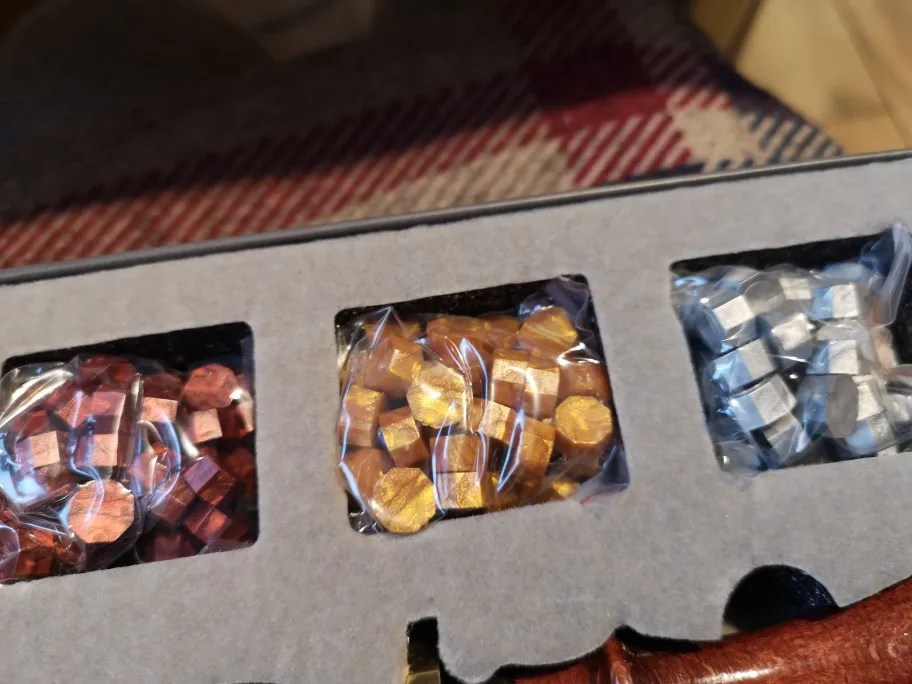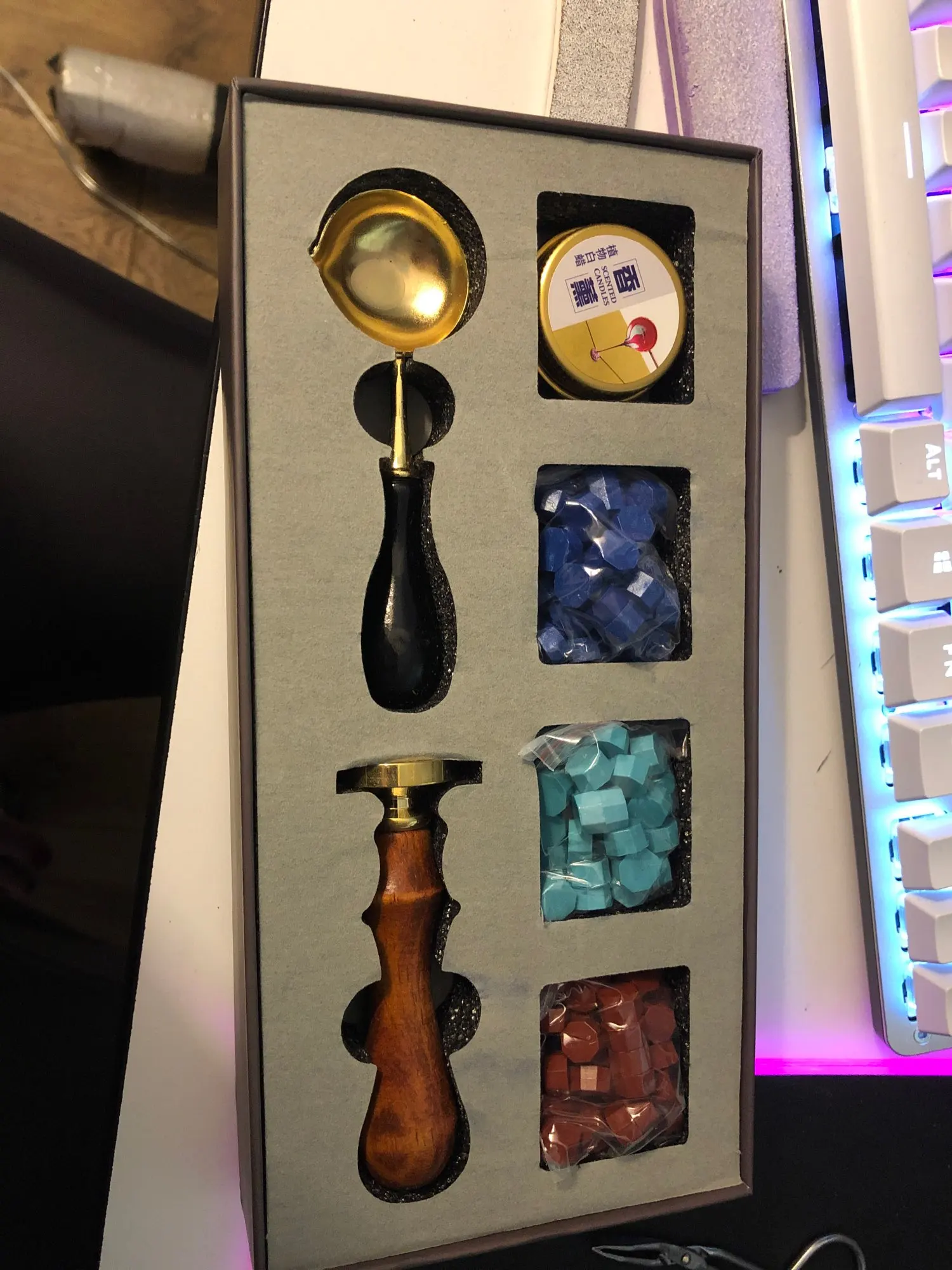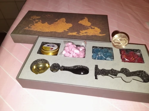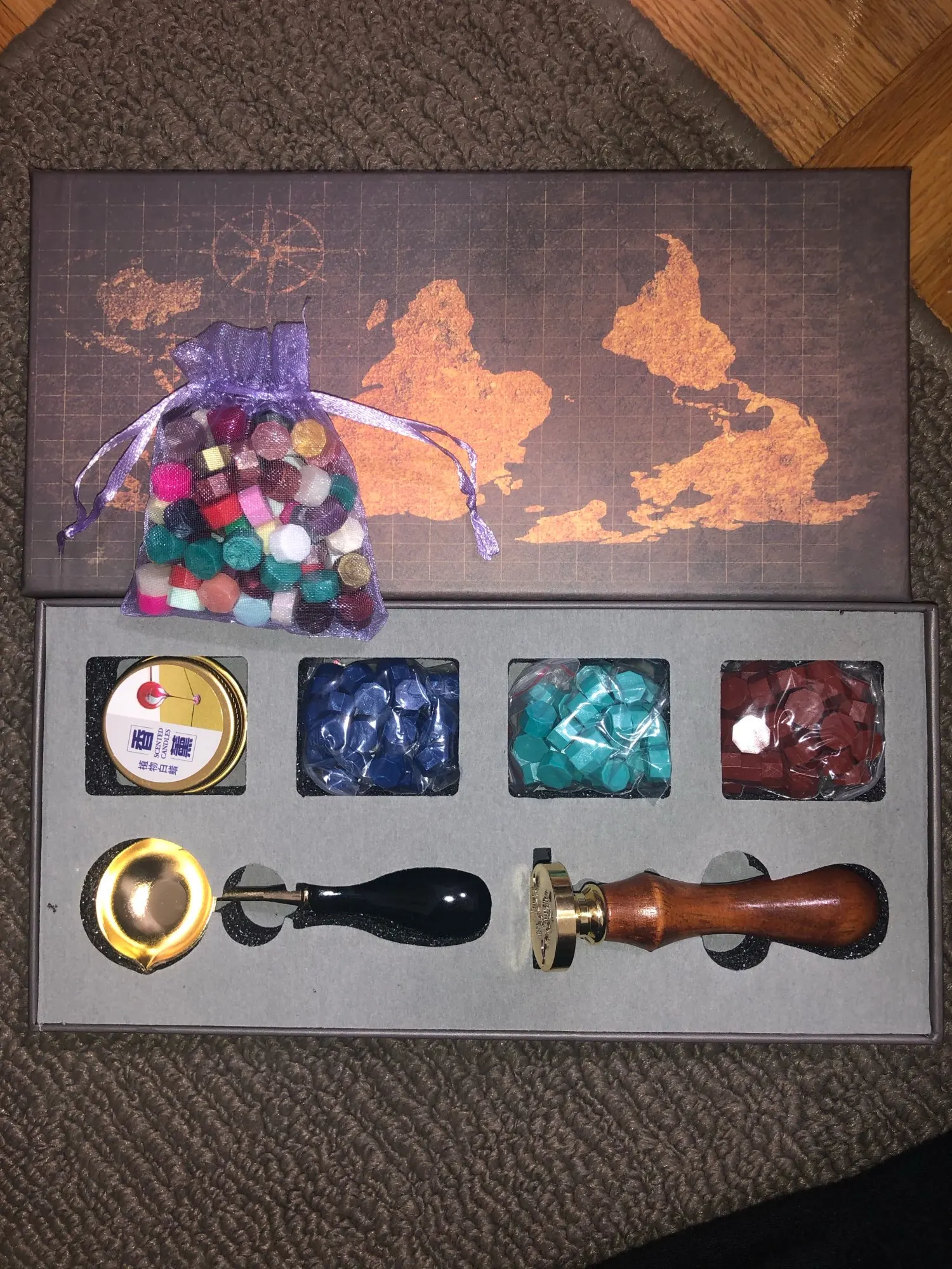 все соответствует, упаковано красиво и качественно. для печати нужно брать до 3х камешков сургуча, печать четкая, красивая, понятная. ложка только коптится быстро, и нагревается сильно, обожглась первый раз. довольна! рекомендую!