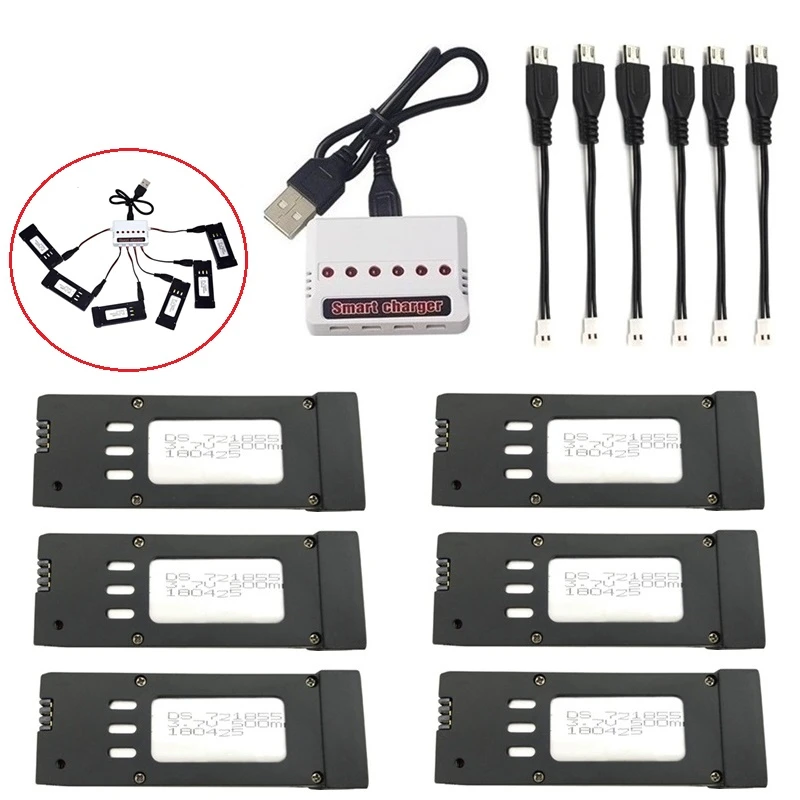 Аккумулятор Lipo 3,7 в 500 мА ч с зарядным устройством 6 в 1 для E58 JY019 S168, запасные части для радиоуправляемых квадрокоптеров, 3,7 в, RC e58