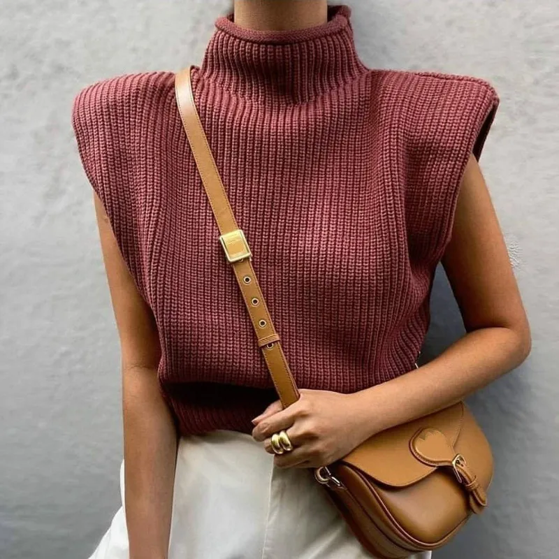 Женский вязаный свитер-водолазка без рукавов, с наплечниками