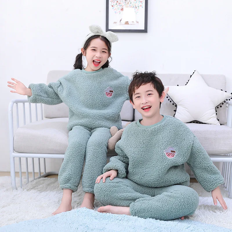 Новинка 2020, Детские осенне-зимние кашемировые теплые пижамные комплекты для мальчиков и девочек, однотонные топы с круглым вырезом и штаны, комплекты одежды для сна