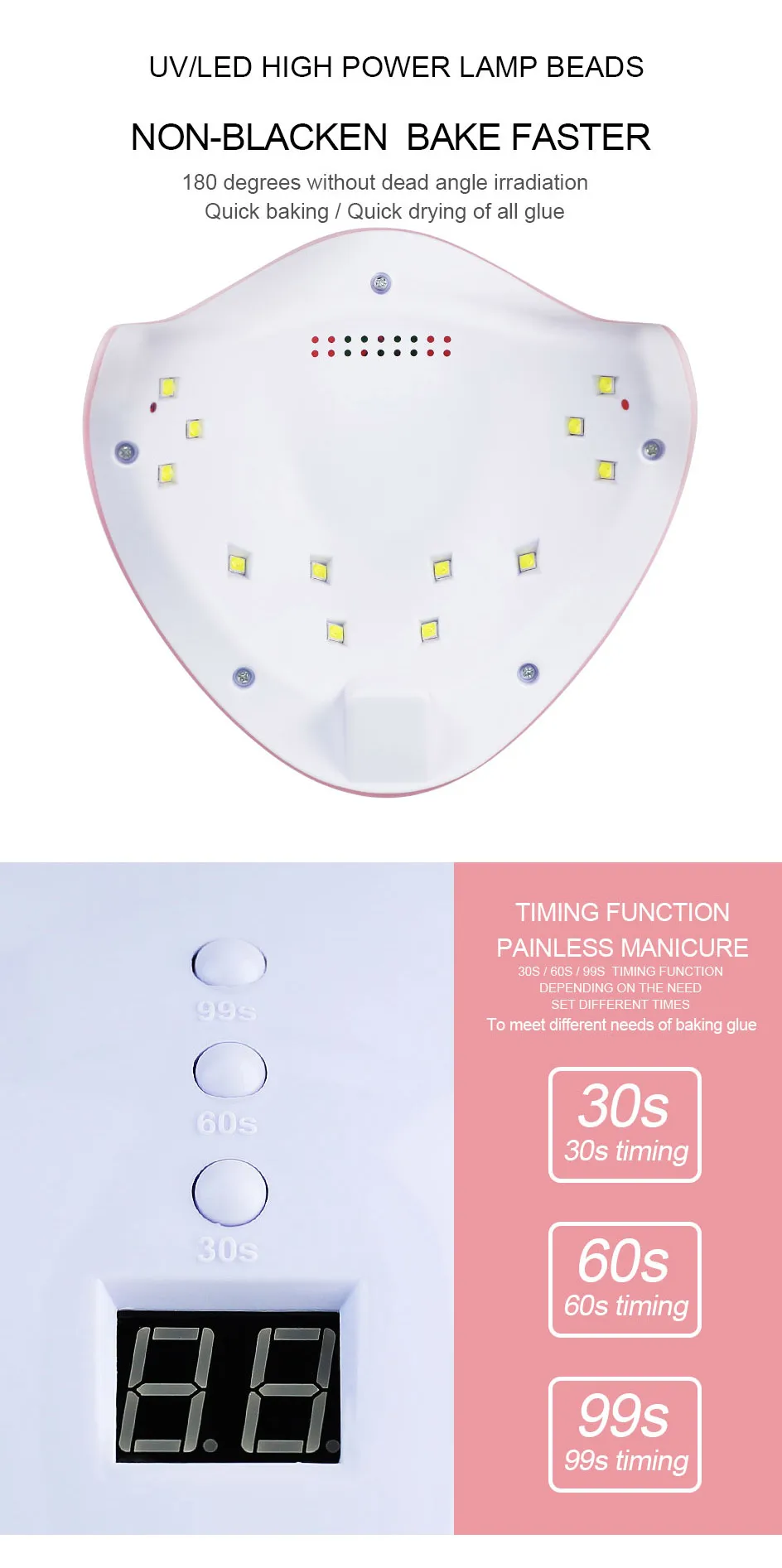 3. Солнечный гвоздь, удобный cye контакт, relleve жжение ощущение4. Двойной источник света (365 + 405 нм) светодиоды для лечения УФ-гл/булайдер/светодиодный гель5,12 шт. светодиодных светодиодов, без мертвой зоны, более бесплатно