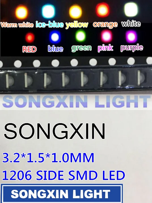 100 шт. 3216 3010 3016 1206 1204 прямоугольная сторона Белый Красный Синий Зеленый Желтый Розовый Оранжевый УФ-фиолетовый теплый белый RGB ICE-Blue IR