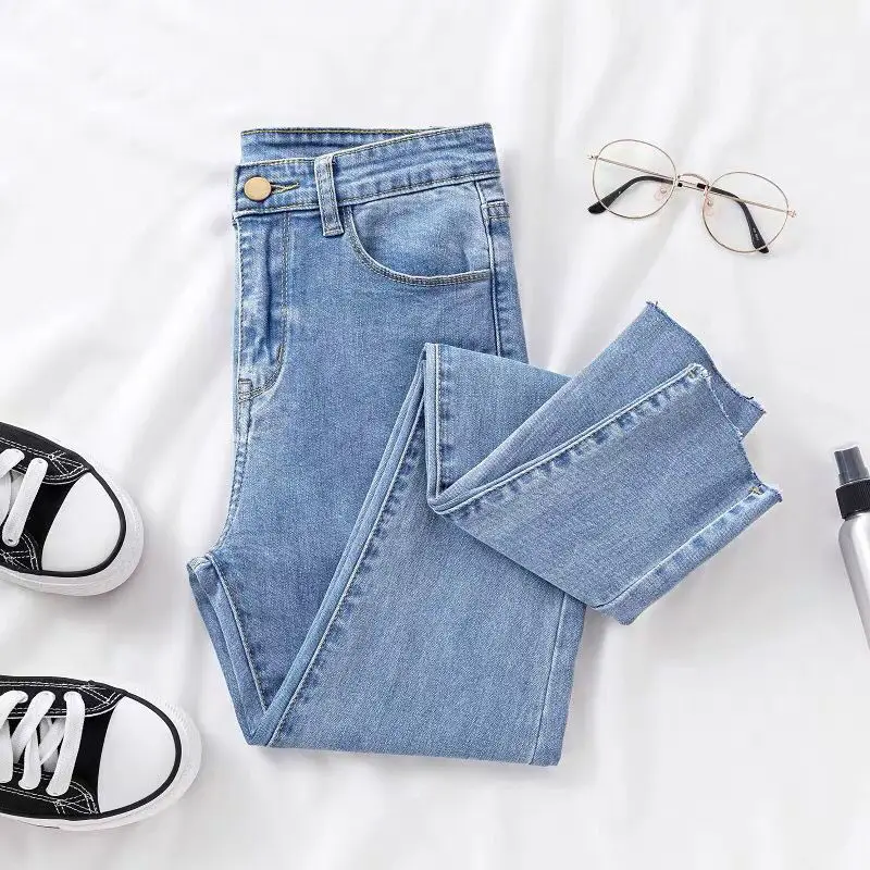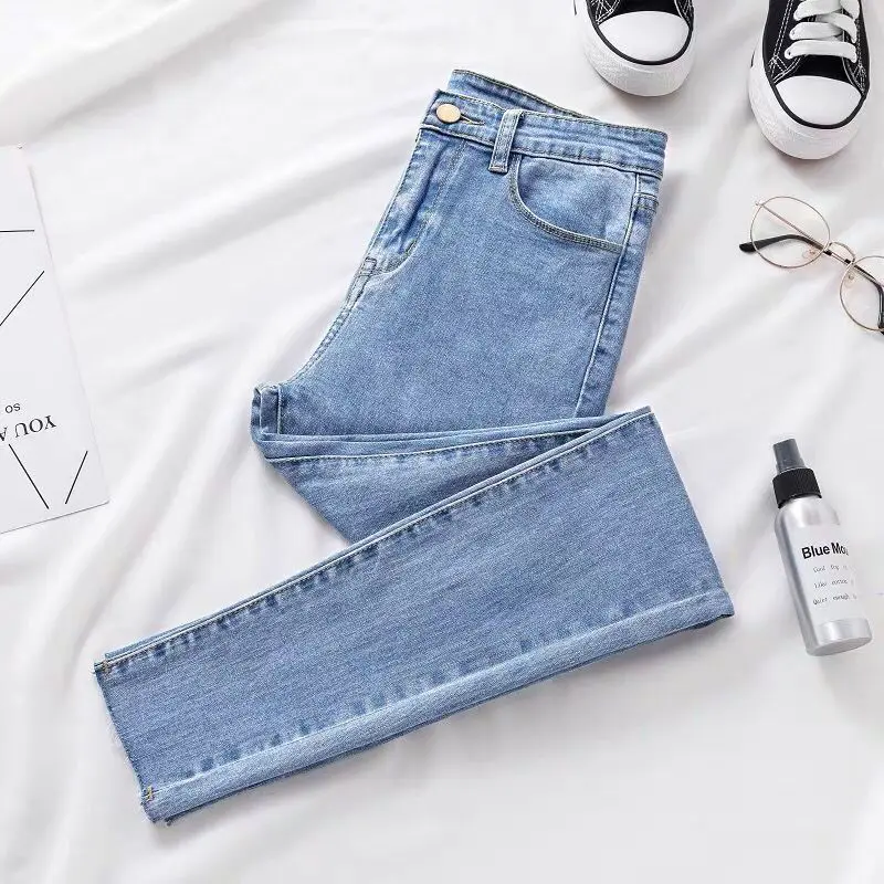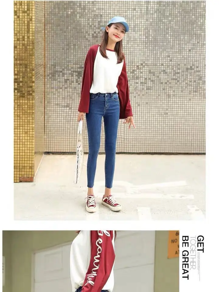 Новинка Осень-зима женские джинсы с высокой талией облегающие девять точек джинсовые маленькие брюки женские эластичные брюки для школьниц