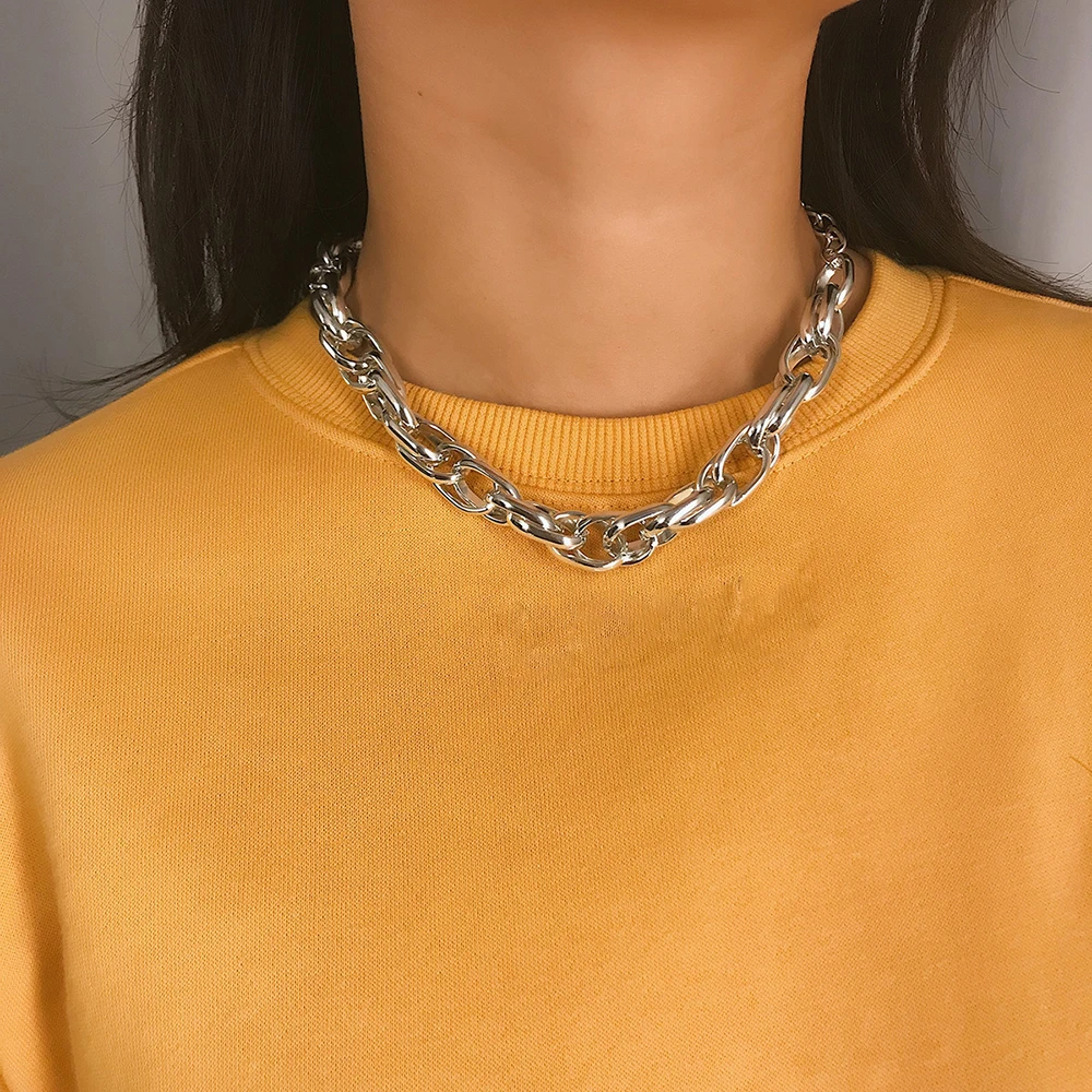 Модное золотое ожерелье-чокер в стиле панк с круглым кольцом, толстая цепь, ожерелье-воротник, эффектное ожерелье до ключиц для женщин и мужчин, ювелирные изделия для вечеринок