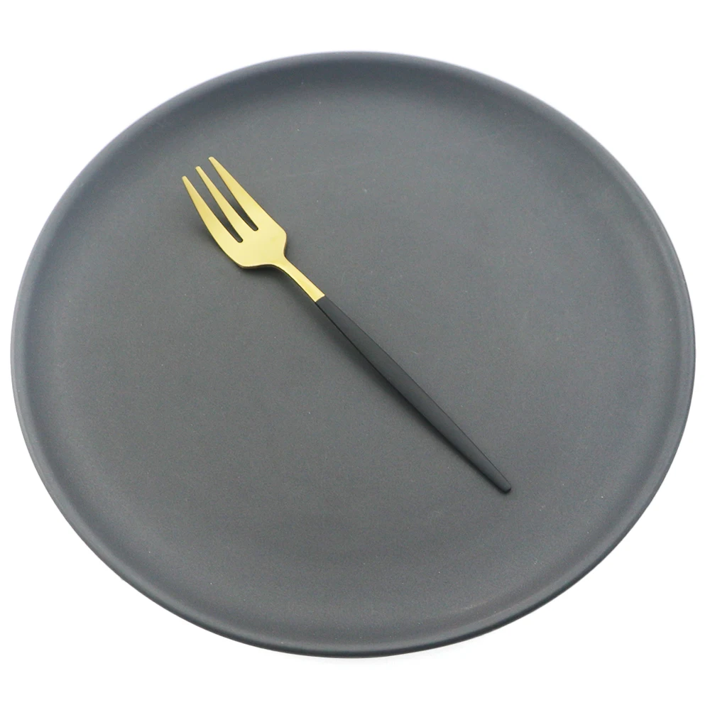 Набор столовых приборов из нержавеющей стали, 6 шт., вилки черного и золотого цвета для матового чая, торта, вилка для закуски, десертов, фруктов, набор серебряных изделий