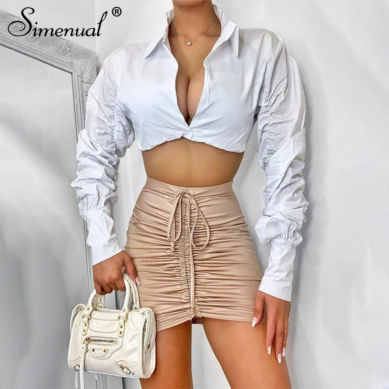 Женская блузка с длинным рукавом, белая однотонная блузка с рюшами, на пуговицах, осень Simenual, 2021