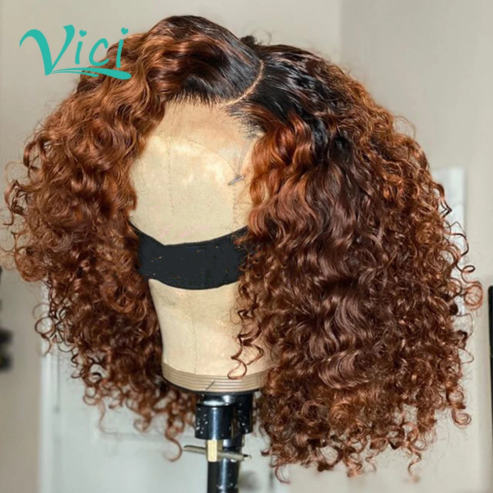 Парик из натуральных кудрявых человеческих волос 1b30 с эффектом омбре, парик на сетке 4x4 с детскими волосами для черных женщин, отбеленные узлы, без клея, бразильский парик