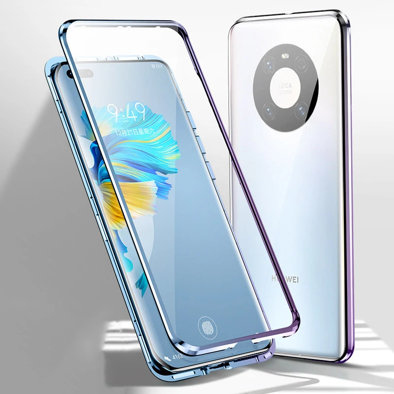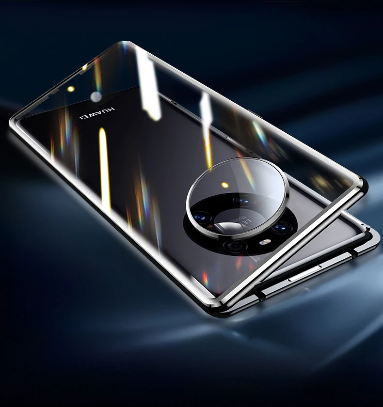 Чехол с полным магнитом для Huawei Mate 40 5G P40 Pro Plus P30 20X, чехол с алюминиевой рамкой, металлический бампер, чехол из закаленного стекла для телефона 360