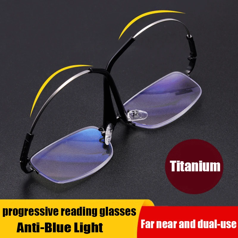 Многофокальные очки для чтения с титановой оправой для мужчин и жен...