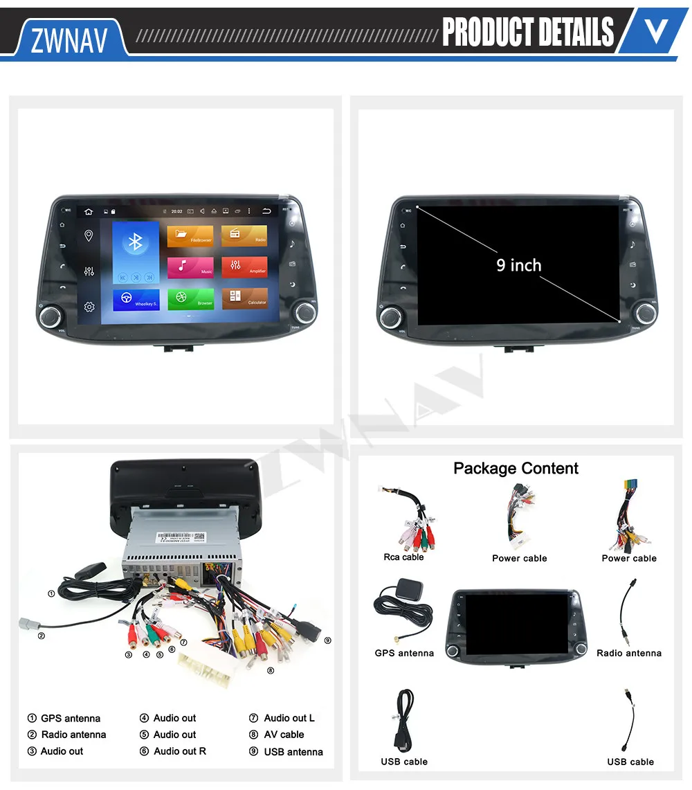 1. Формат видео: поддержка HD 1080P /4K ISP экрана 2. Разрешение экрана: высокое разрешение, Емкостное мультитач с 5 точками, с функцией двойной зоны 3. Список контактов для синхронизации телефонных звонков без помощи Bluetooth 4. Встроенная функция Wi-Fi (Используйте точку доступа со своего смартфона для подключения к Интернету) 5. Встроенное приложение Google Play Store, загрузите нужное вам приложение. 6. Поддержка офлайн-карты GPS и онлайн-карт, поддержка карт Google. 7. Радиочип NXP6686, AM / FM с RDS 8. Поддержка аудио AUX-IN, с 2 портами USB 9. Поддержка управления рулевым колесом 10. Языки OSD: английский/русский/французский/немецкий/испанский/итальянский/арабский/Португальский/Турецкий/тайский/Польский/иврит на всех 53 языках