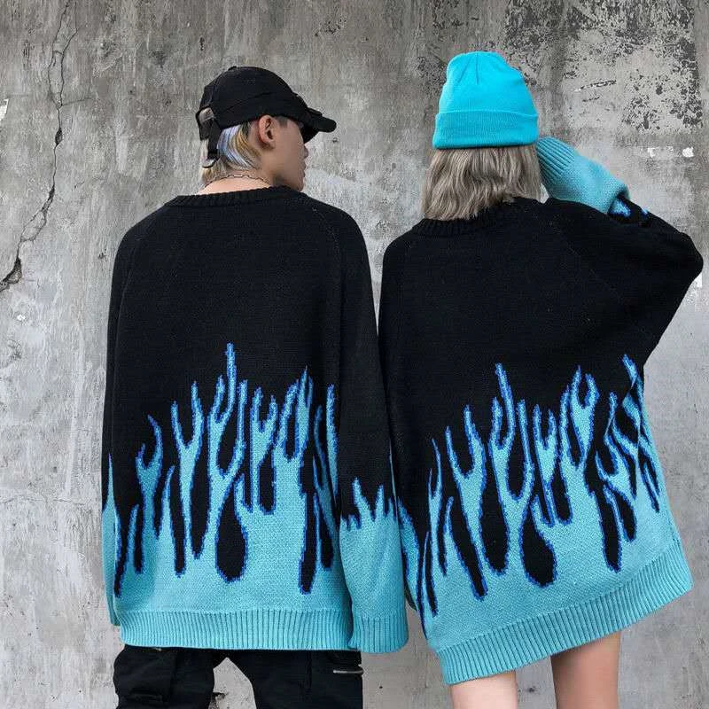 Мужской свитер, уличный топ в стиле ретро с принтом пламени, в стил...