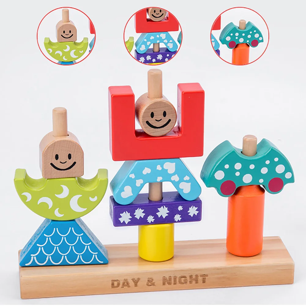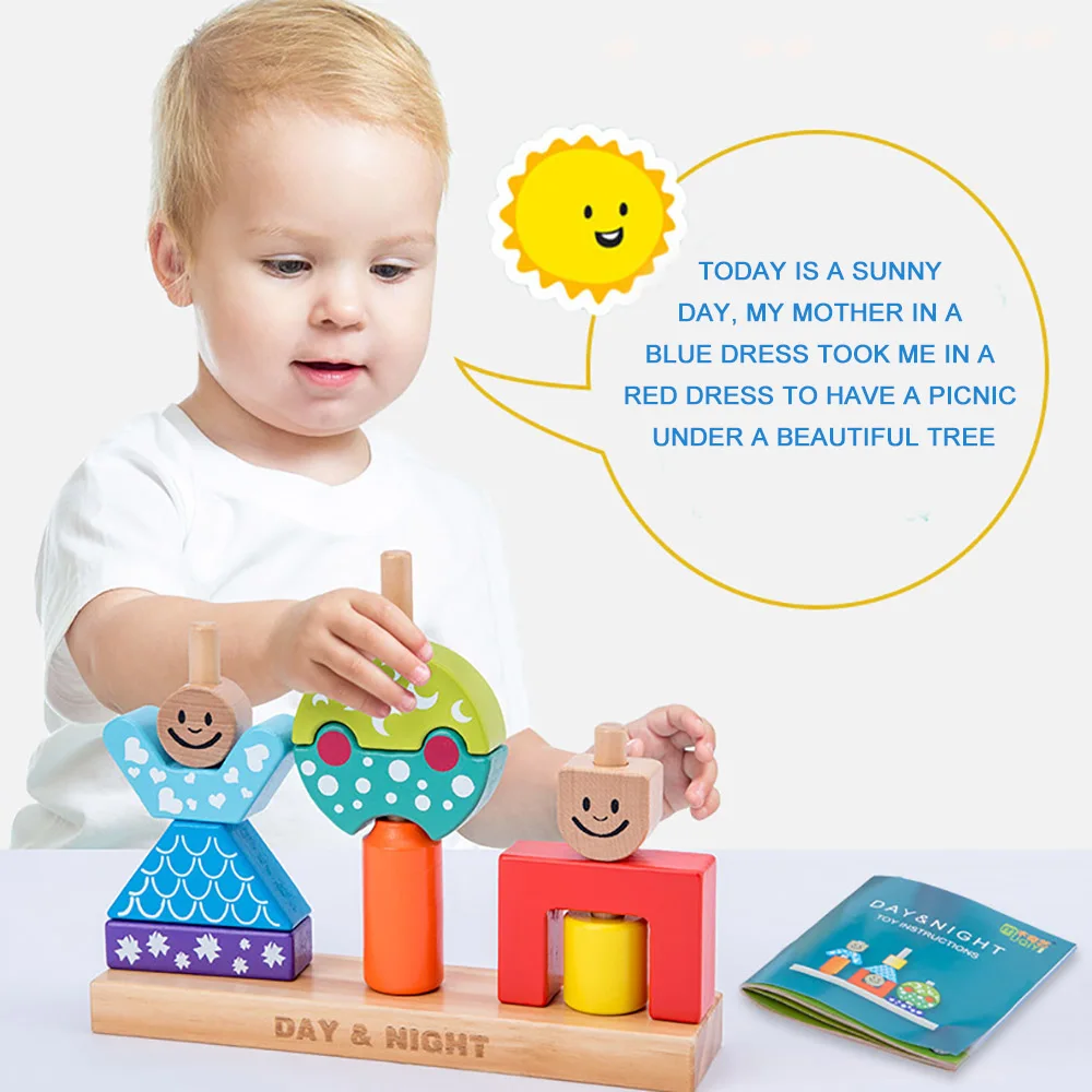 Детские развивающие игрушки, детские строительные блоки, луна, день, ночь, столб, блок Монтессори, обучающая деревянная игрушка, рождественские подарки для новорожденных