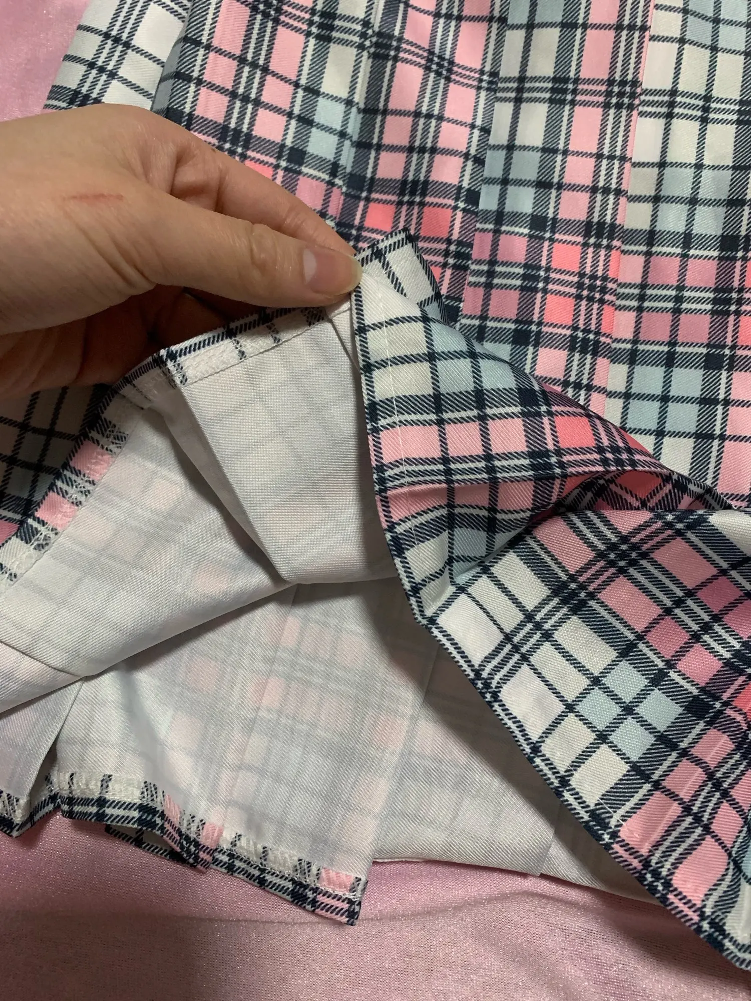Полученная юбка не такая, как на фотографиях. Рисунок является имитирующим фото. Узор юбки имеет Полоски Розового и светло-голубого цвета, но юбка, которую я получил, отличается. Материал-синтетический, а Принт напечатан. Это не самый толстый материал, но, по крайней мере, его не видно, я думаю, что из-за этого складки такие же четкие, как на фото. К моему удивлению, резинка на талии сзади немного эластичная, что делает ее более удобной в носке. В целом, это не отличное качество. Ive купил Потрясающие качественные юбки по такой же цене, поэтому я действительно не рекомендую. Я получил частичное возмещение за это разочарование