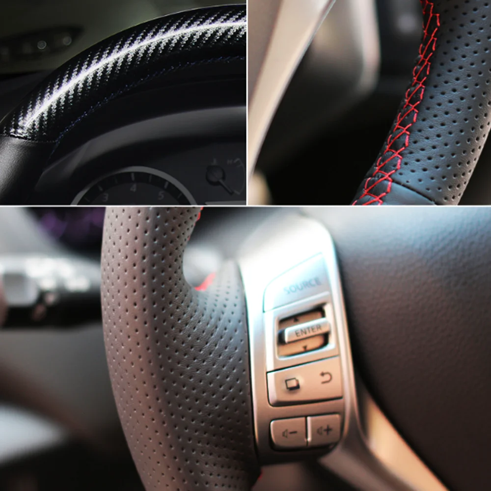 DIY Черный углеродного волокна Кожаный чехол рулевого колеса автомо...