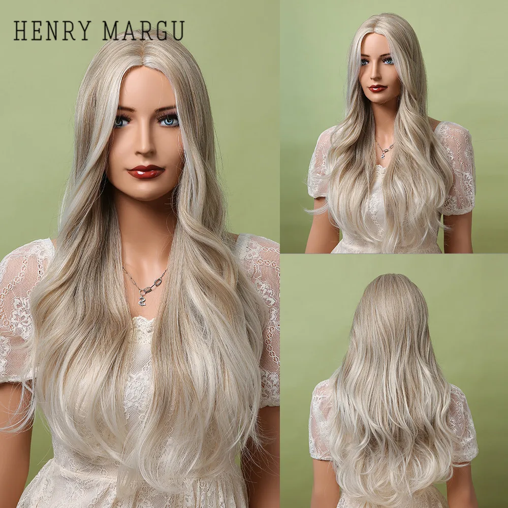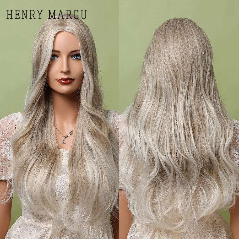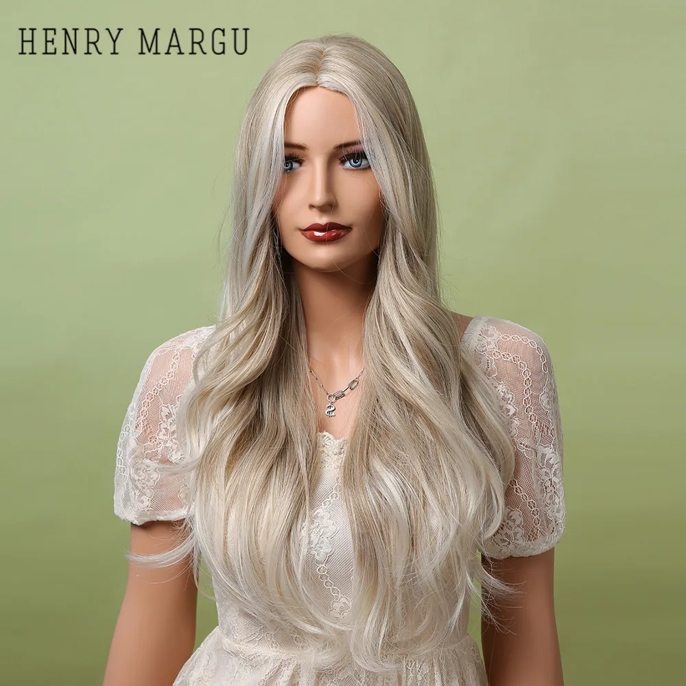 Длинные Синтетические парики HENRY MARGU, Wav, платина, блонд, Омбре, натуральные парики для женщин, средняя часть, вечерние парики для косплея, термостойкие