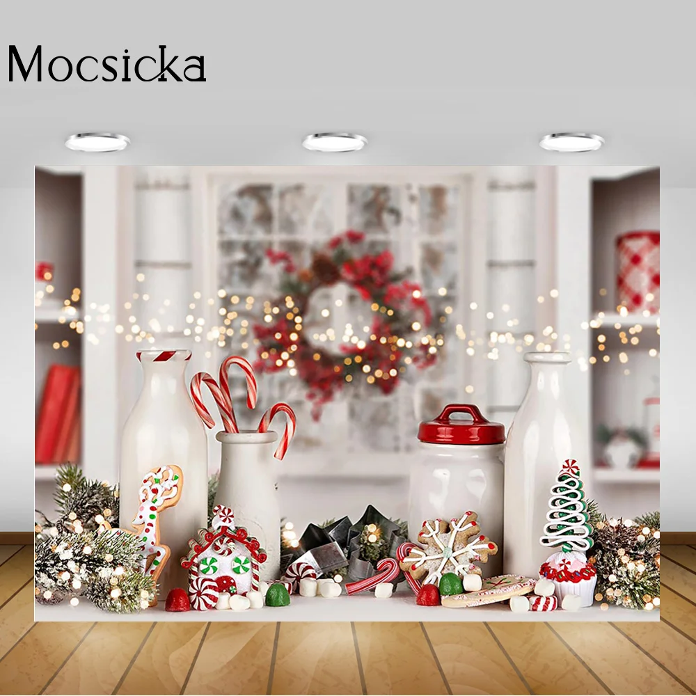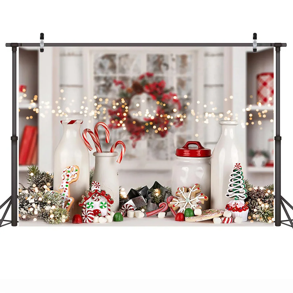 Bokeh Рождественский фон для фотосъемки кухня бутылка красный венок снежинка фон зимний день рождения художественная фотография