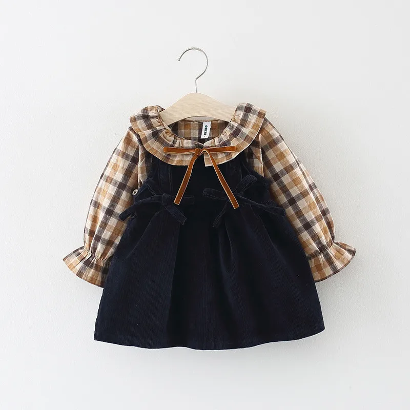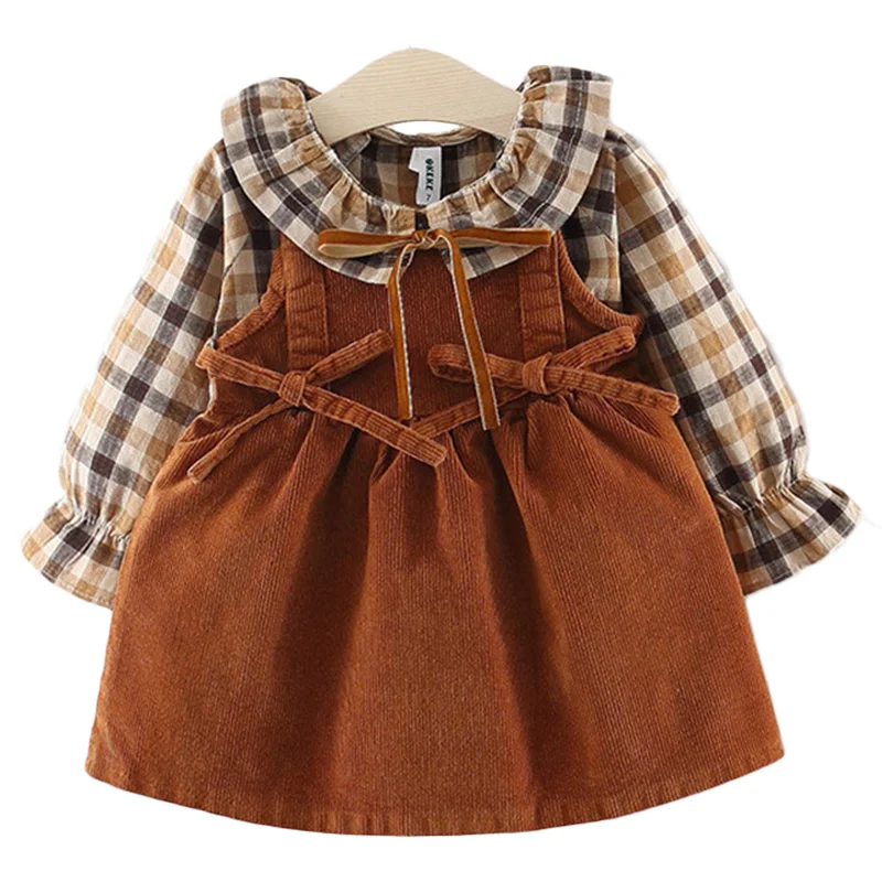 Новый комплект платья для маленьких девочек от 0 до 24 месяцев хлопковая рубашка для малышей + платье костюм из 2 предметов Детская осенняя Милая повседневная одежда