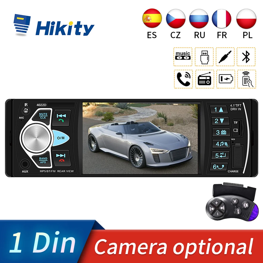 Hikity Автомагнитола 4022D 4,1 "1 Din автомобильное радио аудио стерео USB FM аудио плеер радио Универсальная автомобильная звуковая Поддержка камеры