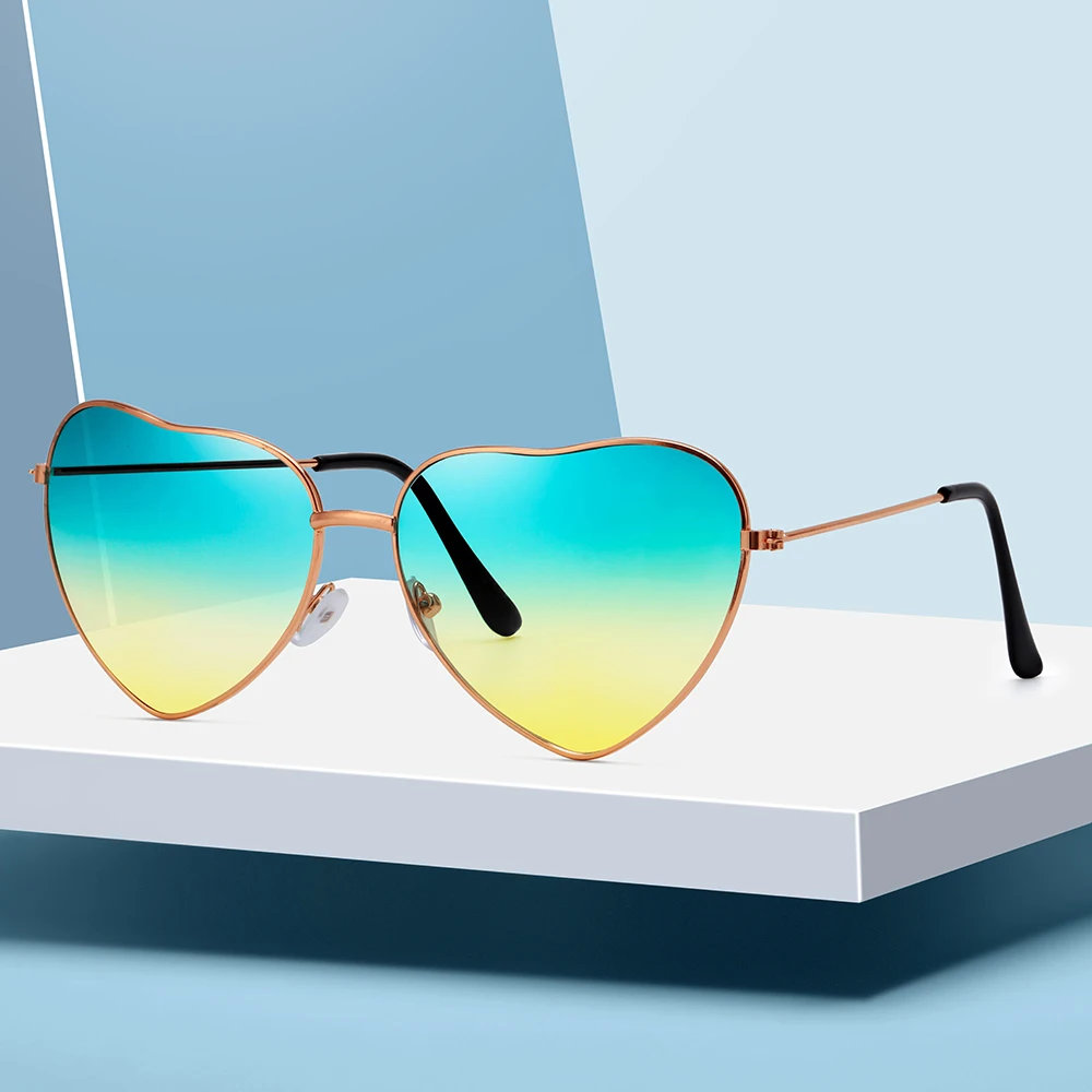 1 шт. Винтаж сердце Форма Солнцезащитные очки градиент цвета конфеты Ocean линзы металлический каркас маскарадный костюм уличная одежда аксессуары подарок