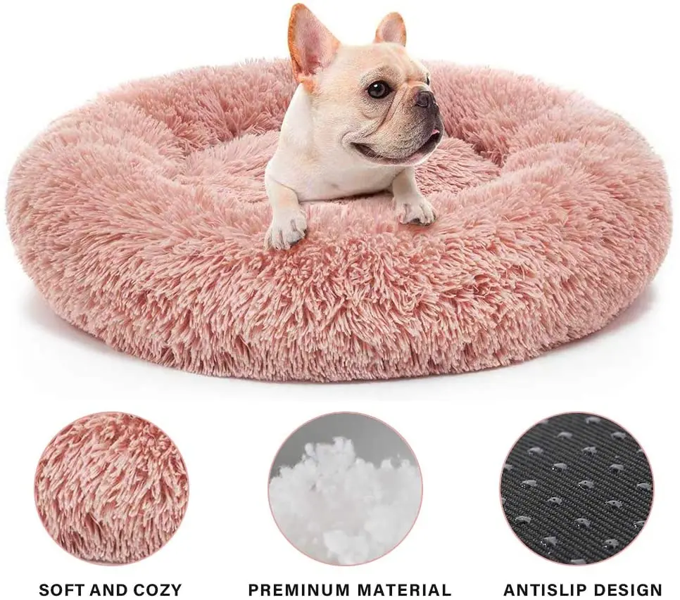 Супермягкая кровать для собак, 1 шт., длинный плюшевый пончик, круг...