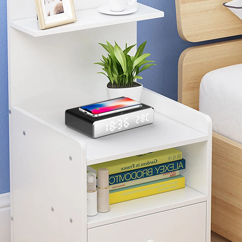1 шт. Электрический светодиодный Будильник с беспроводным зарядным устройством для телефона, настольные зеркальные часы HD с УФ-дезинфекцией
