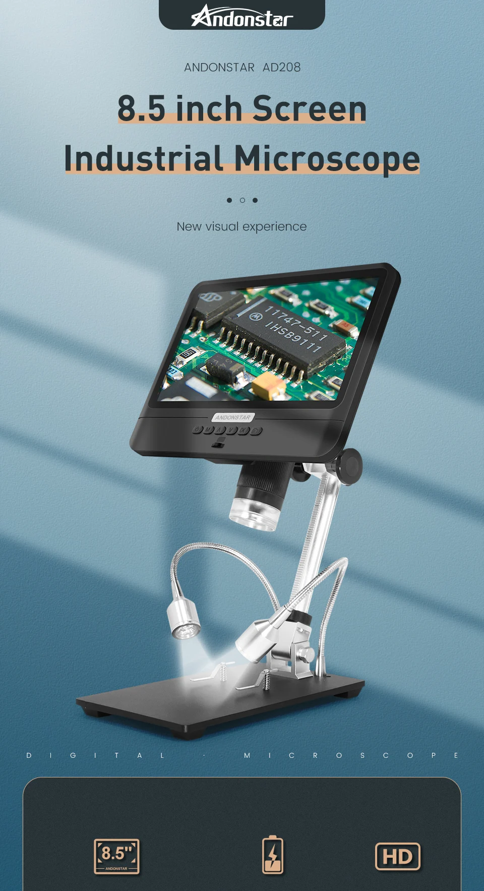 Andonstar Новый AD208 8,5 дюймов Регулируемый ЖК-дисплей дисплей микроскоп для пайки Цифровые микроскопы черный 1080P Сфера паяльный инструмент