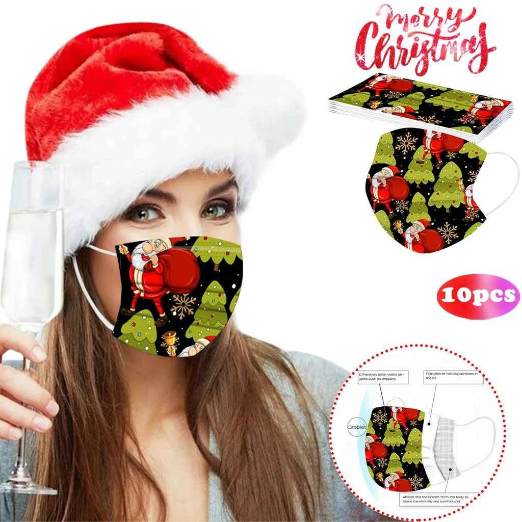 10 шт для рождественской вечеринки маски Для женщин мужчин кошка собака с рисунком маски со ртом для лица одноразовые ветрозащитный дышащий защитный лицевой щиток Mascarillas