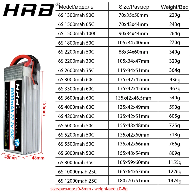 Аккумулятор HRB 6S XT60 22,2220018002600330040005000600010000120001...