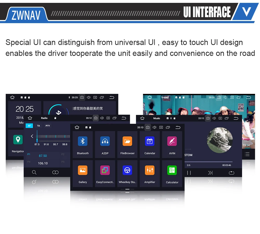 1. Формат видео: поддержка HD 1080P /4K ISP экрана 2. Разрешение экрана: высокое разрешение, емкостный 5 точек касания, с функцией двойной зоны 3. Синхронизация телефонных звонков по Bluetooth 4. Встроенная функция Wi-Fi (Используйте точку доступа со смартфона для подключения к Интернету) 5. Встроенное приложение Google Play Store, загрузите приложение, которое вы хотите. 6. Поддержка gps-карты и поддержка онлайн-карты, поддержка Google Map. 7. Радио чип NXP6686, AM / FM с RDS 8. Поддержка AUX-IN аудио, с 2 usb-портами 9. Поддержка управления рулевым колесом 10.OSD язык: английский/русский/французский/немецкий/испанский/итальянский/арабский/Португальский/Турецкий/тайский/Польский/иврит Все 53 языка