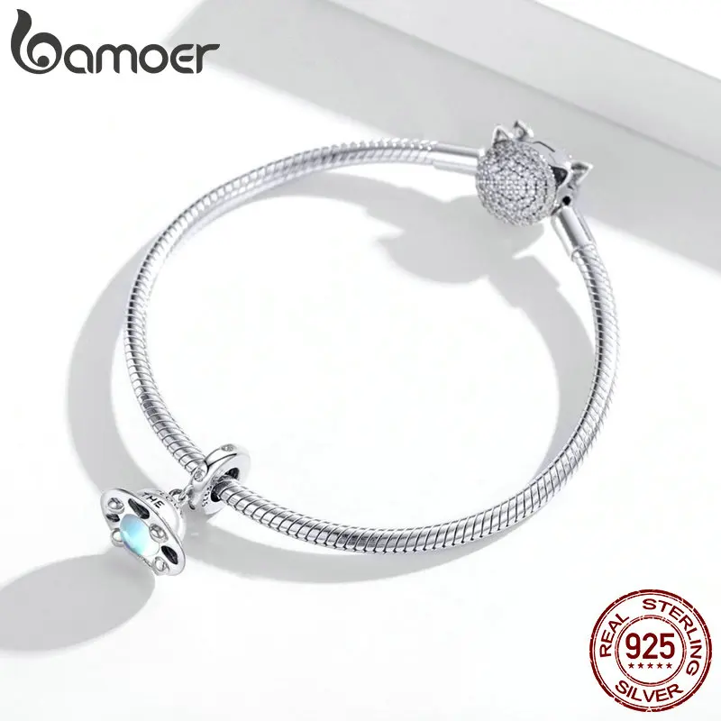 Bamoer маленький космический очаровательный подходящий оригинальный Змеиный браслет из стерлингового серебра 925 пробы женские ювелирные изделия DIY бусины очаровательное изготовление SCC1696