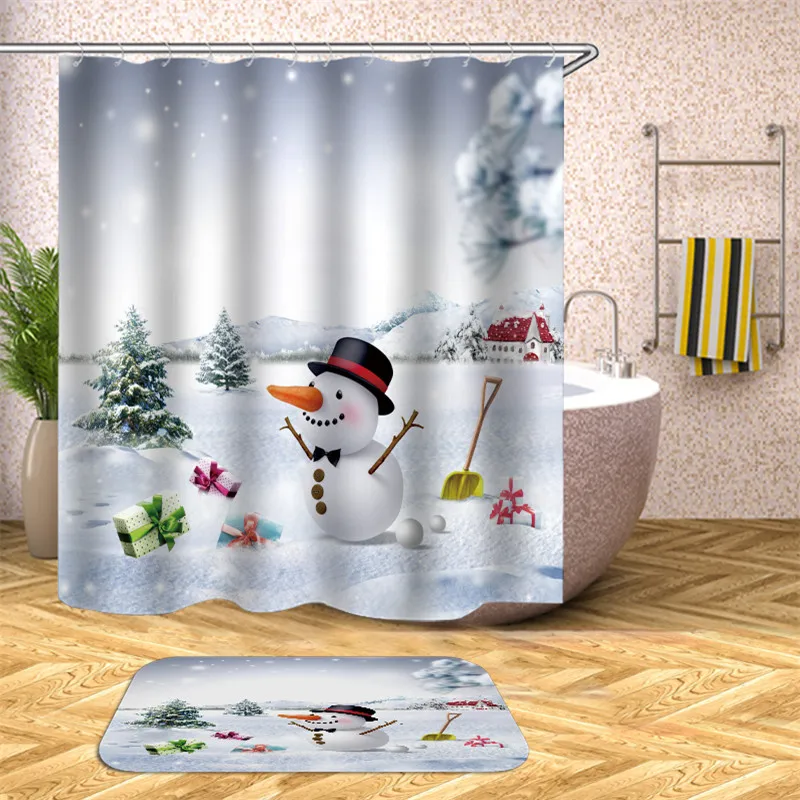 Занавеска для душа с Зимним Пейзажем, набор ковриков для ванной, ковер, Рождественский Снеговик, домашнее рождественское украшение, занавеска для ванной из полиэстера 150180