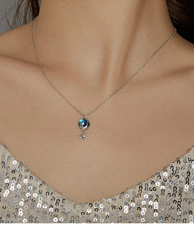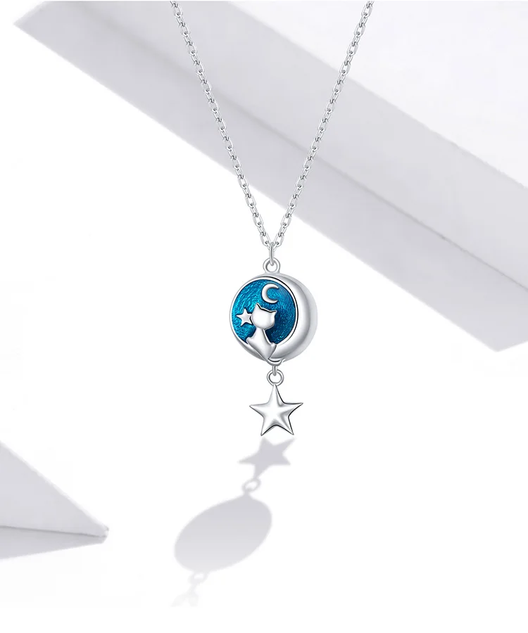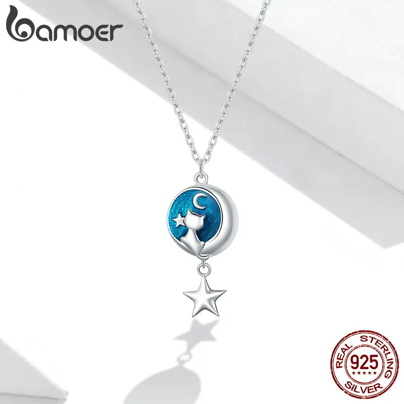 Bamoer, подлинное серебро 925 пробы, Геометрическая Луна и кошка, подвеска, ожерелье для женщин, влюбленная пара, ювелирное изделие, подарок 45 см, SCN422