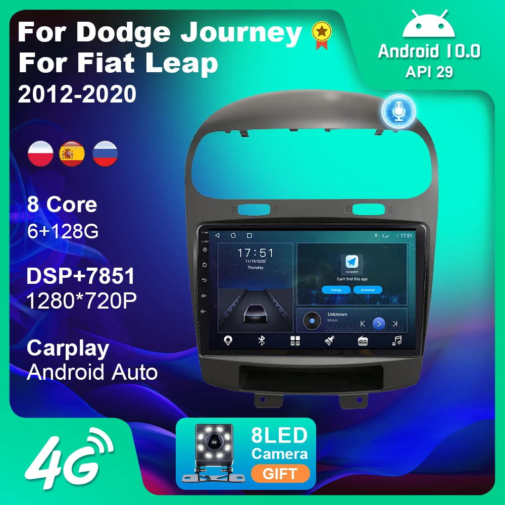 Автомагнитола 2 Din, Android 10, с радио, GPS-навигацией, мультимедийный проигрыватель для Dodge Journey, Fiat Leap 2012-2020
