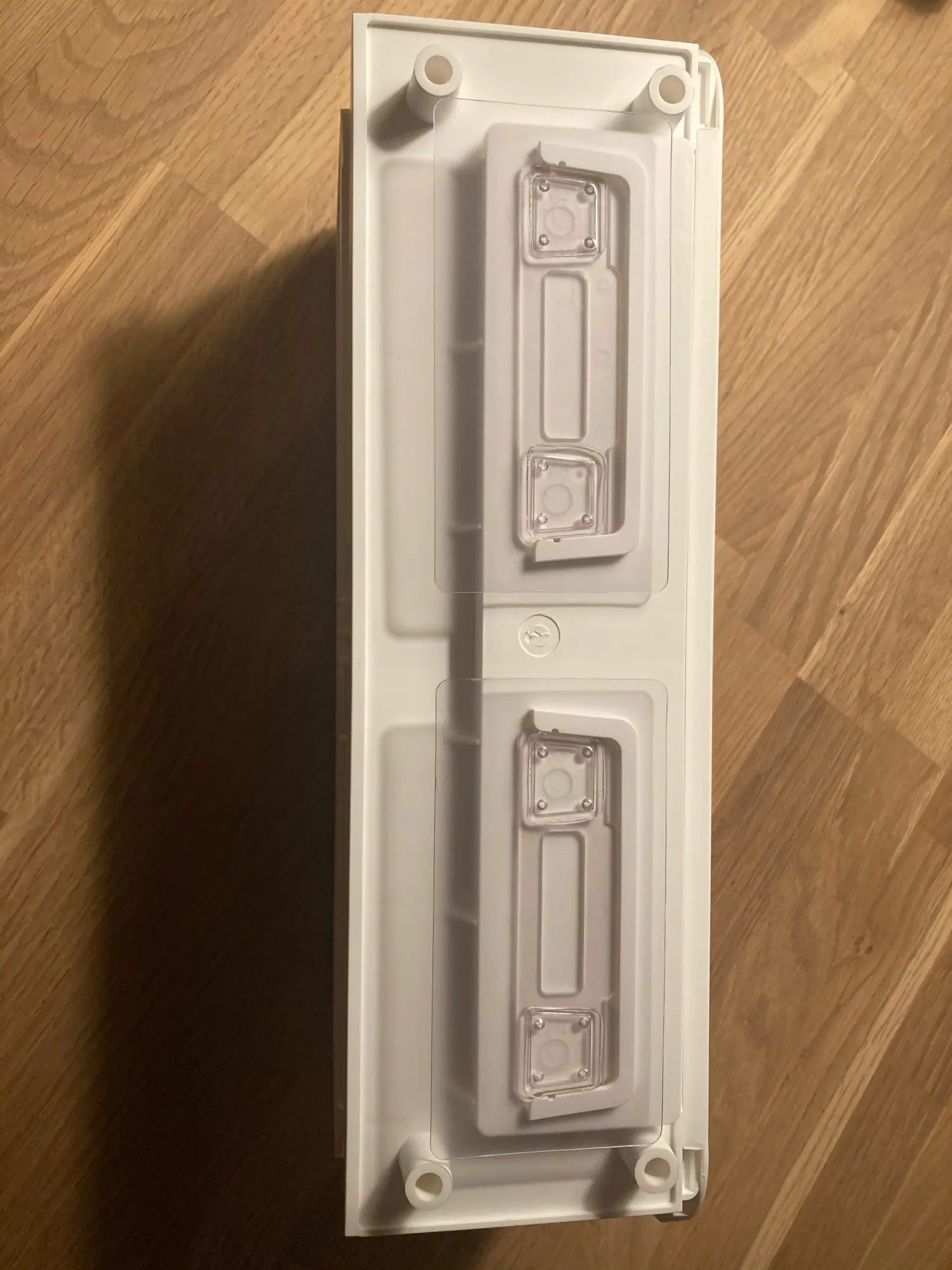gruby plastik. mozna zamontowac na naklejke i na srubki. uszkodzone podczas transportu.