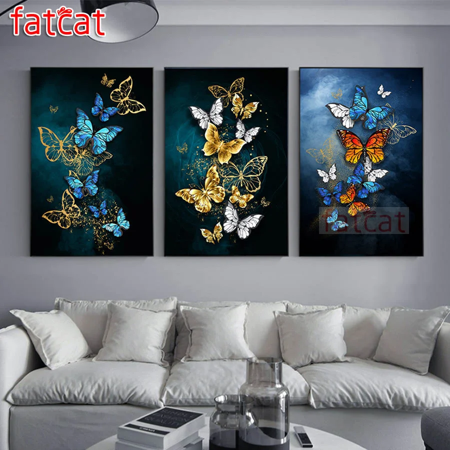 Набор для алмазной вышивки FATCAT AE2522, картина с абстрактными цветами, бабочками, животными, 5d, квадратная, Круглая Мозаика, Триптих