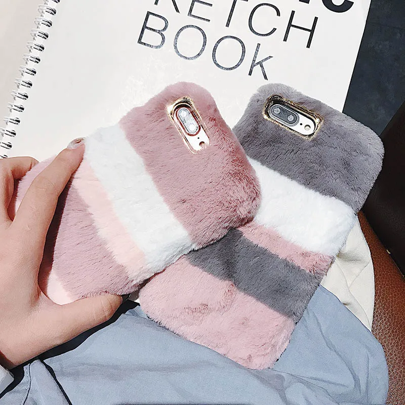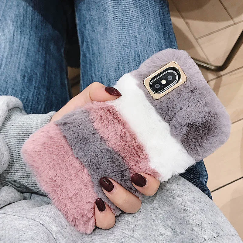 Роскошный милый плюшевый меховой пушистый мягкий чехол для телефона...