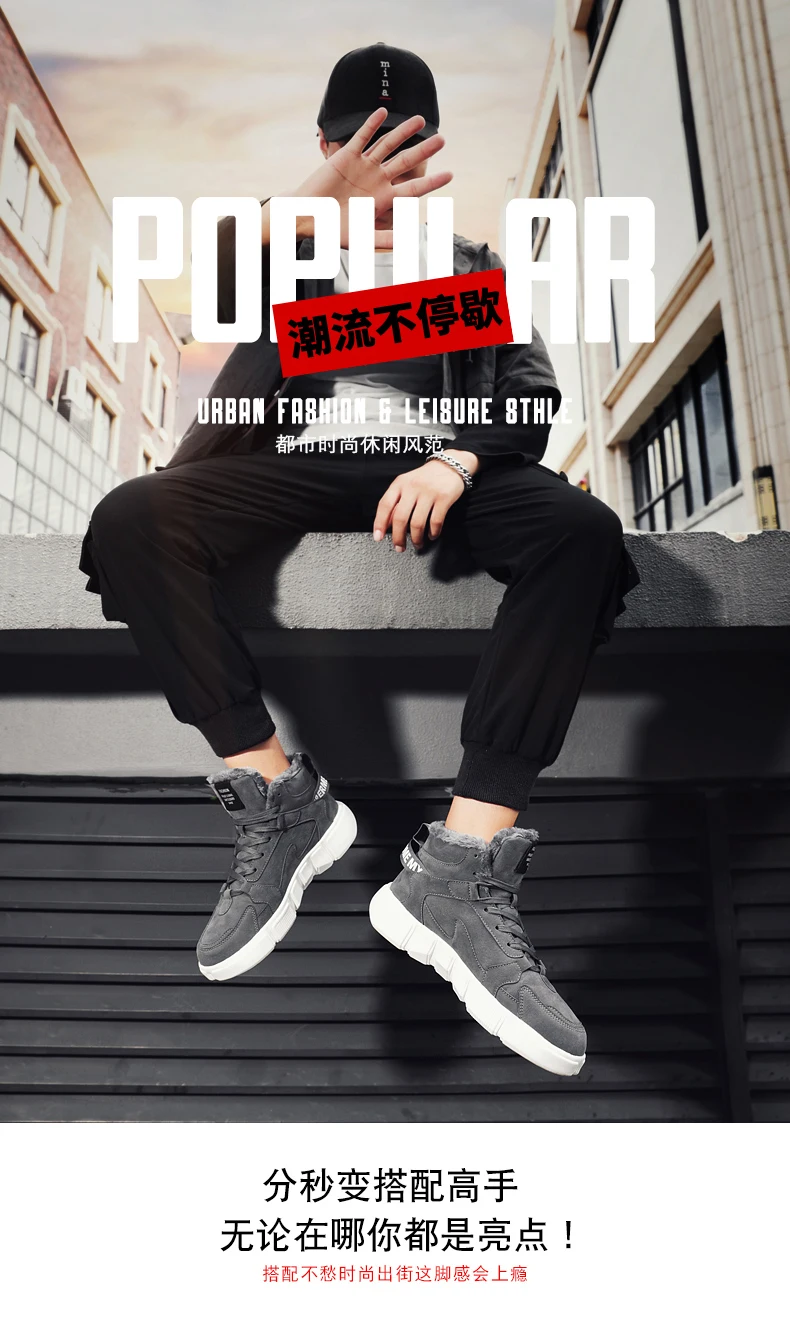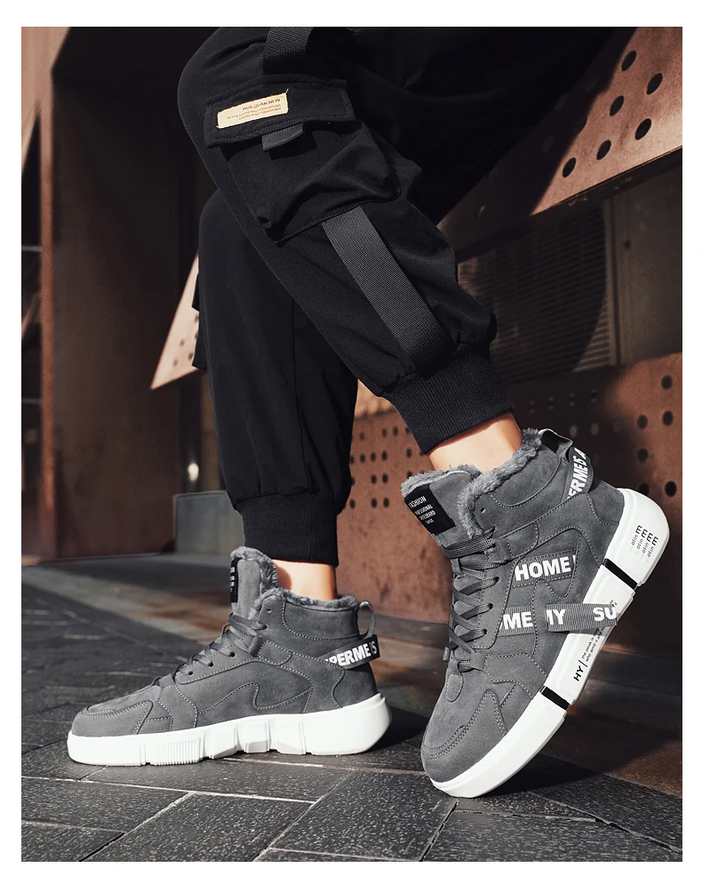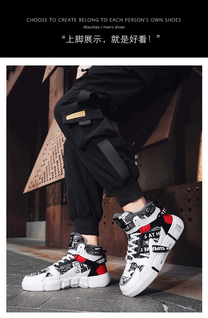 Кроссовки мужские COOLVFATBO, с высоким верхом, кожаные, плоские, с защитой от холода