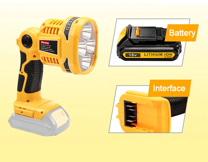 Сменный светильник для пистолета Dewalt для внутреннего и наружного применения, 12 Вт, 14,4-20 в, литий-ионный аккумулятор DCB140DCB182DCB201DCB200