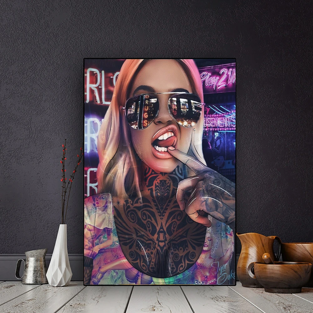 Граффити Сексуальная плохая девушка холст картины граффити тату женщина стена искусство Холст Плакаты и принты картины для гостиной