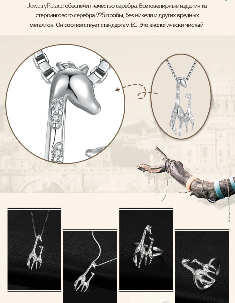 «Жираф» для мамы и ребенка; Демонстрирует щедрый Декор тесные отношения, говорят, что ваша любовь к маме с этим cherishable Жираф подвеска. Изготовлены из 925 серебро, и украшенный в горошек Фианит.
