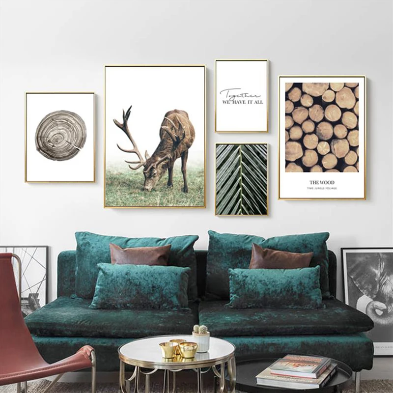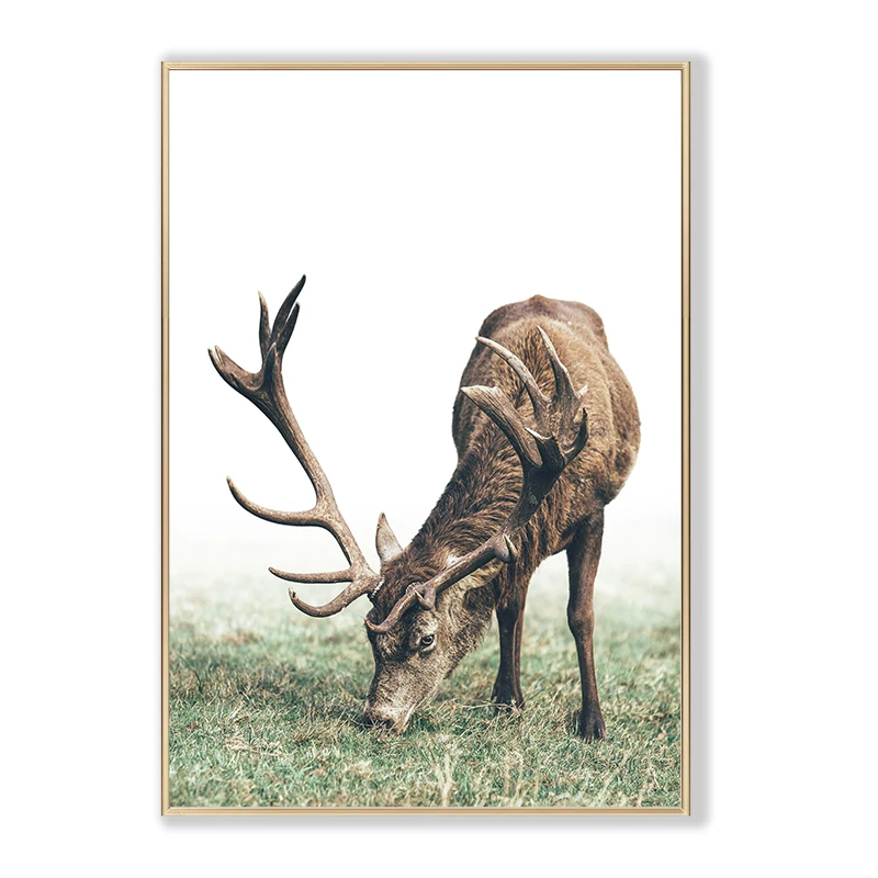 Плакат в скандинавском стиле с изображением оленя, деревянная Насте...