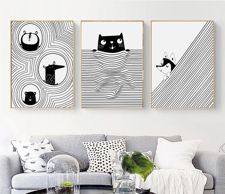 Плакатов и с милым принтом домашние украшения с животными комплекты...