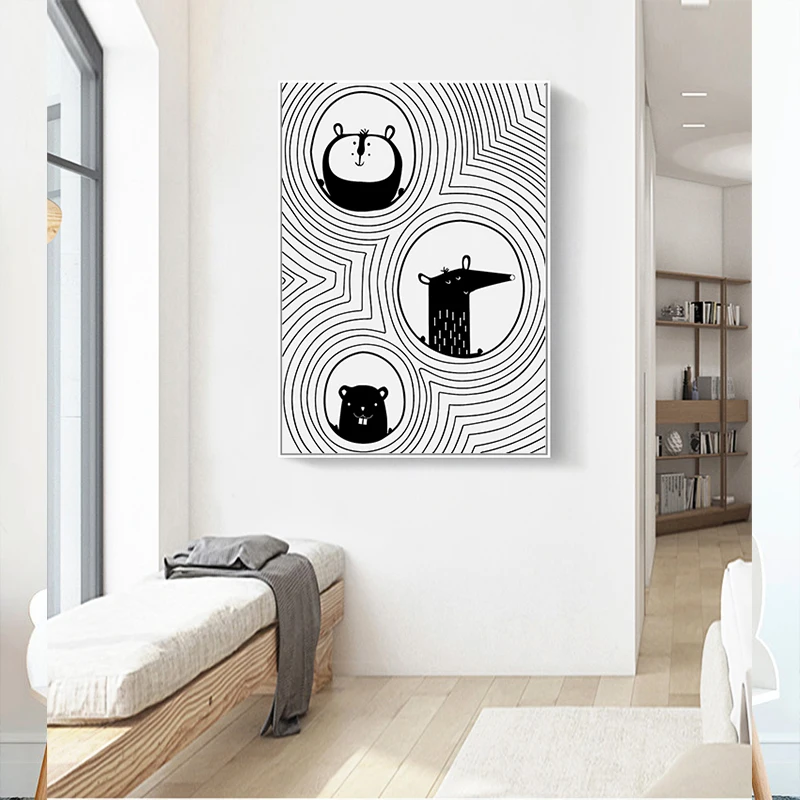 Картина на холсте с изображением животных в скандинавском стиле, ми...