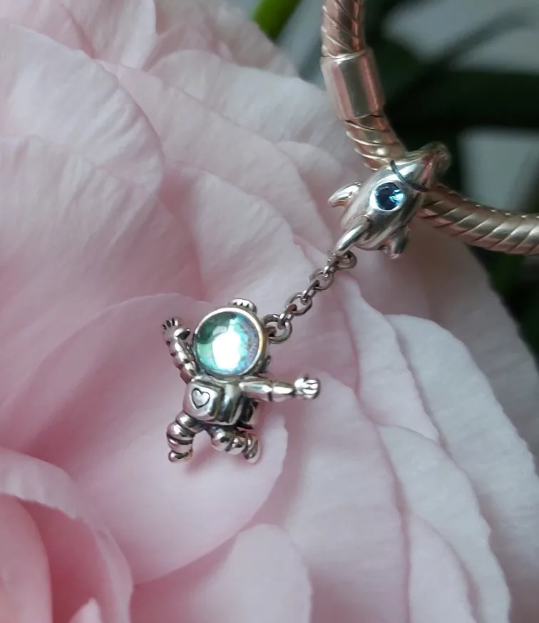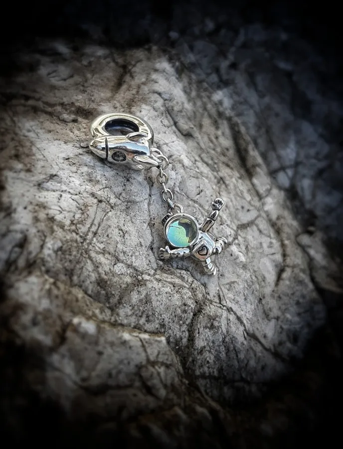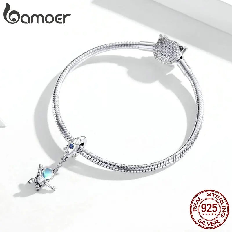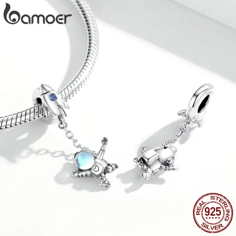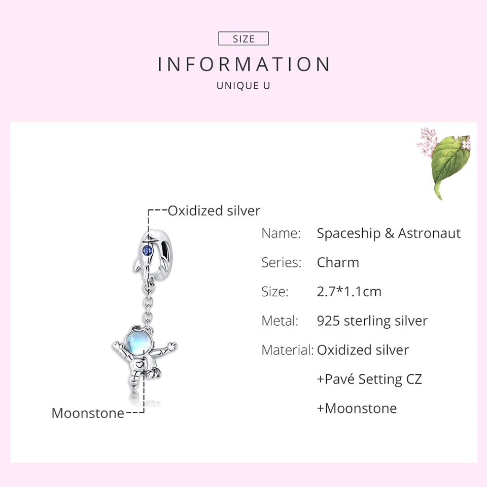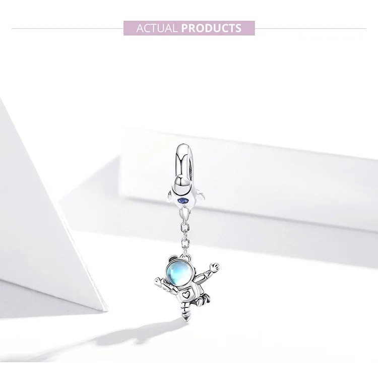 Шарм-подвеска из серебра 925 пробы с космическим кораблем и космонавтом, бижутерия с бисером SCC1695