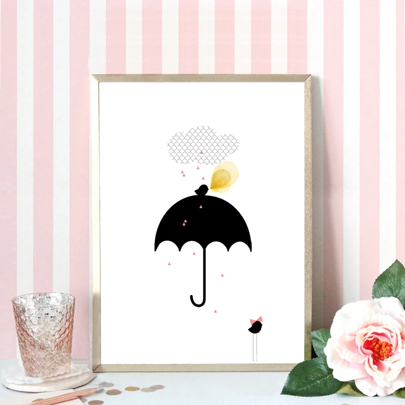 Черно-белый плакат на холсте с изображением облаков и птиц для укра...