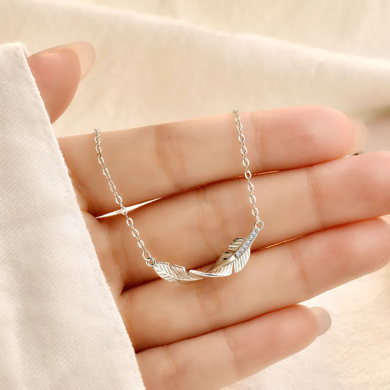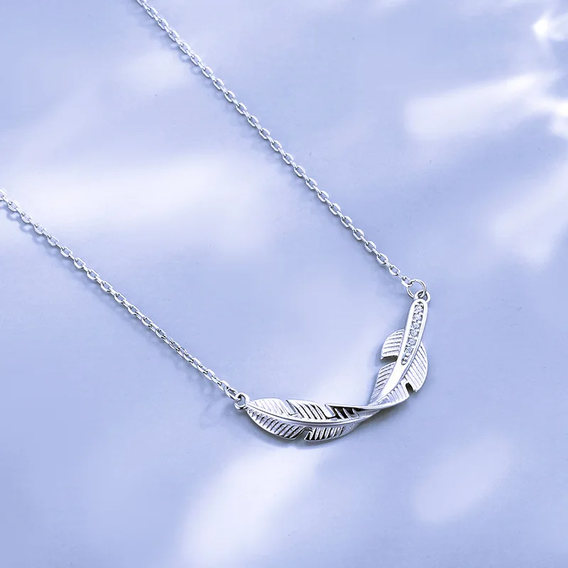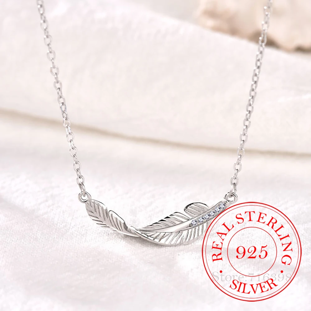 925 стерлингового серебра с украшением в виде кристаллов лист Подвеска в виде пера ожерелье для женщин колье Ожерелье Свадебная вечеринка, ювелирное изделие, подарок