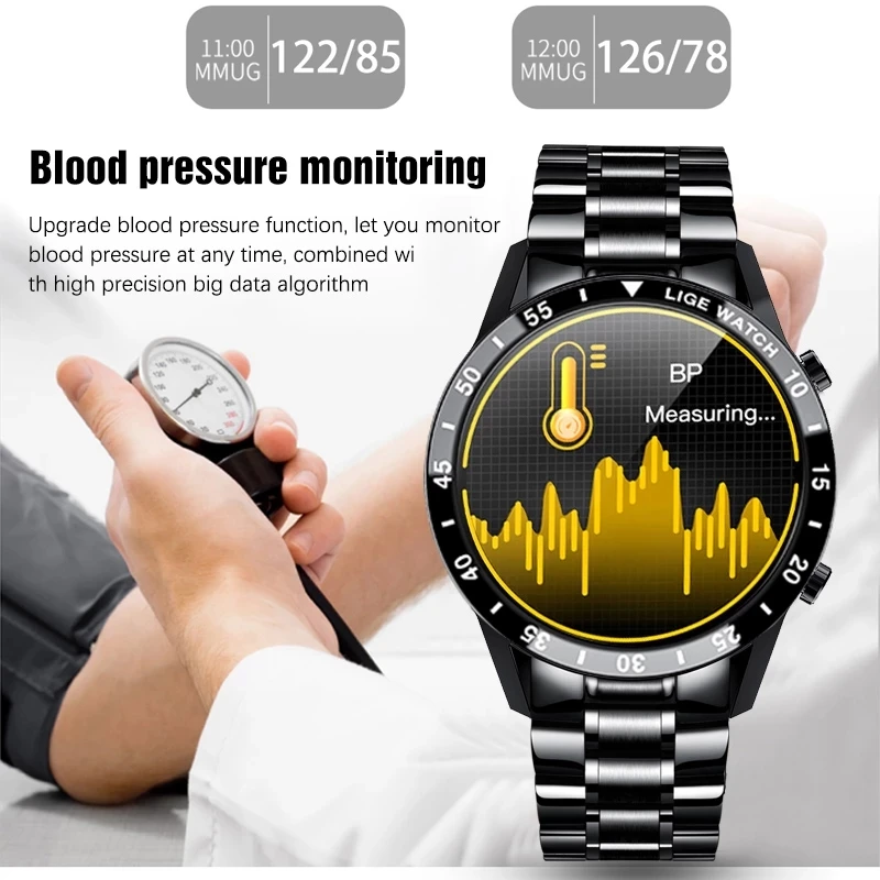 Смарт-часы LIGE мужские с сенсорным экраном, пульсометром и тонометром