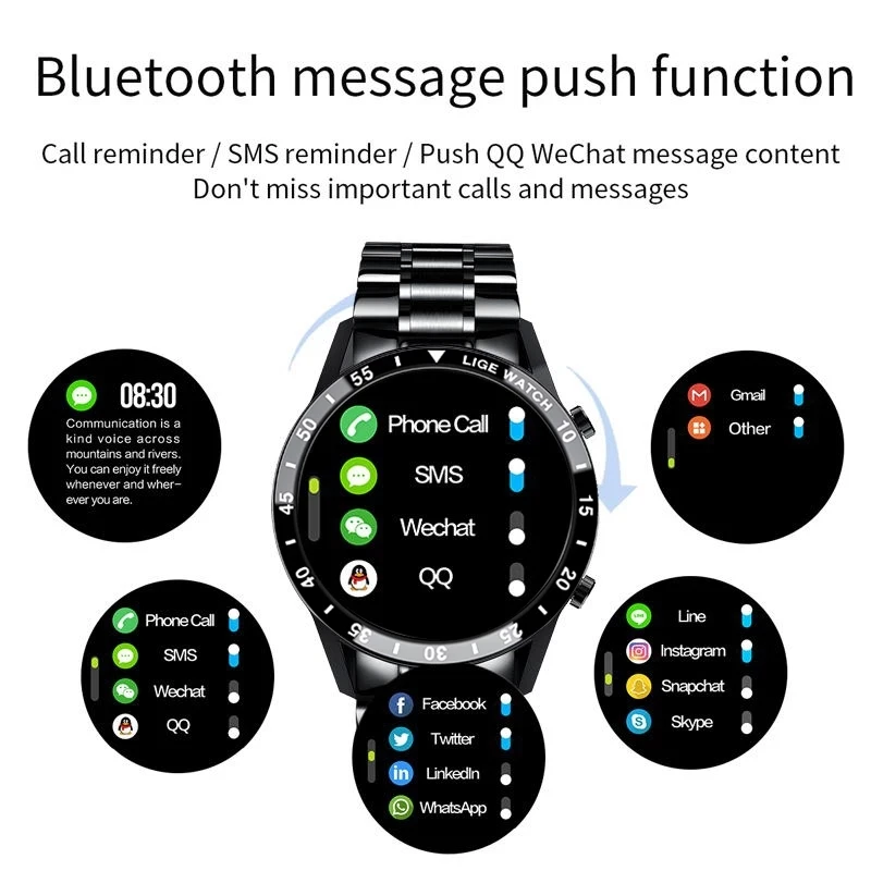 LIGE 2020 Новые смарт-часы Мужские Роскошные многофункциональные ча...
